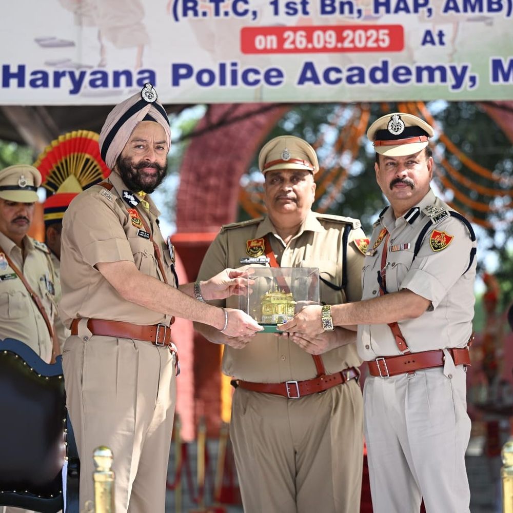 हरियाणा पुलिस अकादमी मधुबन जिला करनाल के नेताजी सुभाष चन्द्र बोस दीक्षांत परेड स्थल में रिक्रूट बेसिक कोर्स बैच नंबर 93, पूर्व सैनिक के दीक्षांत समारोह में हरियाणा पुलिस अकादमी के निदेशक डा. अरशिंद्र सिंह चावला ने बतौर मुख्य अतिथि शिरकत की। इनके प्रशिक्षण की अवधि 16 दिसंबर 2024 से 26 सितंबर 2025 तक रही। इसमें कुल 16 जवान शामिल है, जो सभी पूर्व सैनिक है। पुष्पा पुलिस अधीक्षक अकादमी ने स्वागत संबोधन व प्रशिक्षण प्रतिवेदन प्रस्तुत किया और उप पुलिस अधीक्षक अकादमी नरेश अहलावत ने धन्यवाद किया। हरियाणा सशस्त्र पुलिस मधुबन के उप महानिरीक्षक सुरिंद्रपाल सिंह व अकादमी के पुलिस अधीक्षक बलजिंद्र सिंह ने मुख्य अतिथि को स्मृति स्वरूप स्मृति चिन्ह भेंट किया। देशभक्ति की भावना से सेना में सेवाएं दी मुख्य अतिथि डा. अरशिंद्र सिंह चावला ने भव्य परेड में शामिल जवानों को संबोधित करते हुए कहा कि सर्वप्रथम मैं दीक्षान्त समारोह में शामिल सभी पूर्व सैनिक जवानों व उनके परिजनों को बधाई देता हूं। हमें गर्व है कि आपने पुलिस विभाग में शामिल होकर एक बार फिर चुनौतीपूर्ण राह का चयन किया है। आप सभी बधाई के पात्र हैं। सभी पूर्व सैनिक जवानों ने जिस त्याग, समर्पण, बहादुरी, निडरता, अनुशासन और देशभक्ति की भावना से भारतीय सेना में सेवाएं दी है, मुझे विश्वास है कि उसी परंपरा का निर्वहन करते हुए हरियाणा पुलिस में शामिल होकर नागरिकों को शानदार सेवाएं देंगे। वर्दी का रंग बदला, कर्तव्य का बोध वही आपकी शानदार व भव्य परेड इस बात का प्रमाण है कि आपके व्यक्तित्व में पहले से ही शारीरिक क्षमता,अनुशासन और लीडरशिप के गुण विद्यमान हैं, जो उपस्थित प्रशिक्षणार्थियों के लिए प्रेरणादायी हैं। इस बात को सदैव याद रखें कि आपकी गौरवशाली वर्दी का रंग भले ही बदल गया है, लेकिन कर्तव्य बोध वही रहेगा- समाज की सुरक्षा सुनिश्चित करना। न्याय मुहैया करवाने के प्रति संकल्पबद्ध उन्होंने कहा कि यह परिवर्तन केवल सेवा का बदलाव नहीं है बल्कि दायित्व है। यदि यहां ये कहा जाए कि आपके पूर्व अनुभव व परिश्रम से सकारात्मक परिणाम आएंगे तो इसमें कोई अतिश्योक्ति न होगी। देश की लोकतांत्रिक पुलिस प्रणाली में लोकतांत्रिक पुलिस समाज में विश्वास, सुरक्षा व न्याय मुहैया करवाने के प्रति संकल्पबद्ध है। आशा है कि आप इन मापदंडों पर खरा उतरेगे। शपथ को सदैव याद रखेंगे जवान उन्होंने शपथ की ओर संकेत करते हुए कहा कि मुझे आशा ही नहीं बल्कि पूर्ण विश्वास है कि आज सत्यनिष्ठा, देशभक्ति, ईमानदारी और निष्पक्षता से कार्य करने की जो शपथ जवानों ने ली है, उसे सदैव याद रखेंगे। अपेक्षित मापदंडों पर खरा उतरेंगे, सकारात्मक उर्जा के साथ कार्य करेंगे और हरियाणा पुलिस के गौरव को ओर 