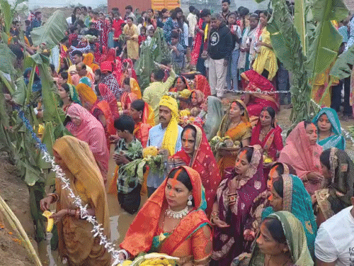 पूर्वांचल से आए परिवारों ने पूरे विधि-विधान से की पूजा