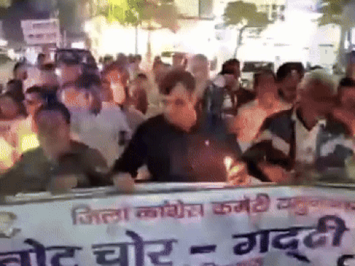 दिल्ली में राहुल गांधी द्वारा प्रेसवार्ता कर उठाए गए वोट चोरी के मामले को लेकर यमुनानगर में बुधवार की शाम को कांग्रेस नेताओं और कार्यकर्ताओं द्वारा मॉडल टाउन में कैंडल मार्च निकाला गया। इस दौरान भाजपा के खिलाफ नारेबाजी भी की। यमुनानगर कांग्रेस ग्रामीण जिलाध्यक्ष नरपाल सिंह ने कहा कि, आज राहुल गांधी ने दिल्ली में प्रेस कॉन्फ्रेंस कर हरियाणा के बारे में प्वाइंट टू प्वाइंट बताया कि कैसे भाजपा ने वोट चोरी किए। चुनाव में 25 लाख वोटों की हेराफेरी की गई। एक-एक घर में 90-90 लोगों के वोट बने हुए हैं और यह लोग एक दूसरे को जानते तक नहीं हैं। जिलाध्यक्ष ने कहा कि यह सीधी वोट चोरी की सरकार है। चुनाव से पहले सीएम नायब सैनी हंसकर कह रहे थे कि हमारे पास सारे इंतजाम हैं, हमारा राज बनेगा। इन बातों से भाजपा की मंशा साफ थी कि इस बाद उन्होंने चोरी करके सरकार बनानी है। चुनाव में भाजपा का कोई रुझान नहीं था। बच्चा-बच्चा कहता था कि कांग्रेस की सरकार बनेगी, लेकिन नतीजे कुछ और नजर आए। भाजपा सरकार प्रजातंत्र की हत्या करना चाहती है, लेकिन कांग्रेस ऐसा नहीं करने देगी। कांग्रेस पहले से आवाज उठाती आई और आगे भी उठाती रहेगी। इस मौके पर काफी संख्या में कांग्रेसी मौजूद रहे।