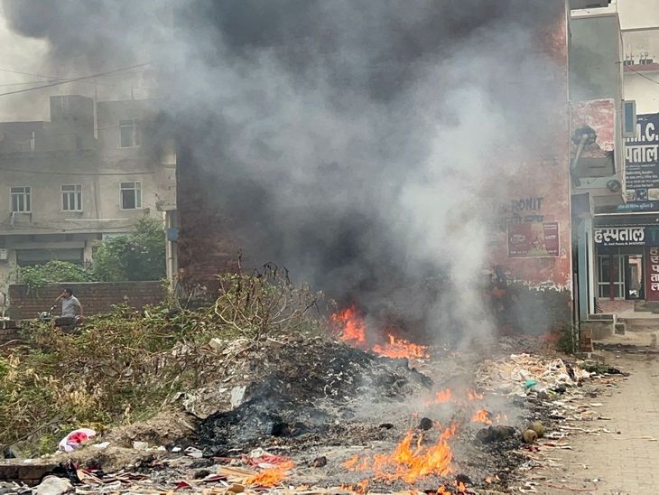 हांसी में कचरे के ढेर में लगी आग:जहरीला धुआं फैला, लोगों को सांस लेने में दिक्कत, पार्षद ने जताई नाराजगी