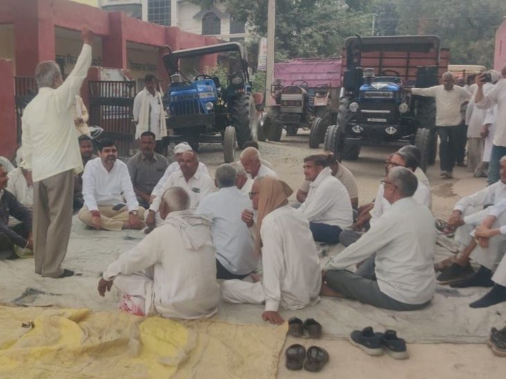 पलवल मार्केट कमेटी दफ्तर पर किसानों का प्रदर्शन:धान की खरीद और भुगतान न होने से नाराजगी, बोले- होगा बड़ा संघर्ष
