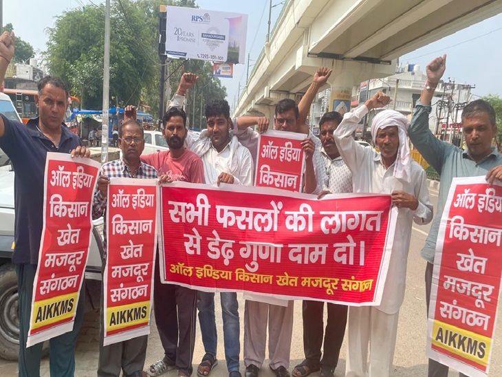 बहादुरगढ़ में किसान संगठनों ने किया प्रदर्शन:बाजरे की खरीद एमएसपी न करने पर रोष, सरकार के खिलाफ की नारेबाजी