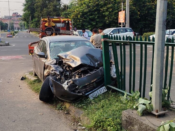 पंचकूला में दो कारों की टक्कर, 3 लोग घायल:देहरादून जा रहा था युवक, गाड़ी बेकाबू होकर डिवाइडर से टकराई
